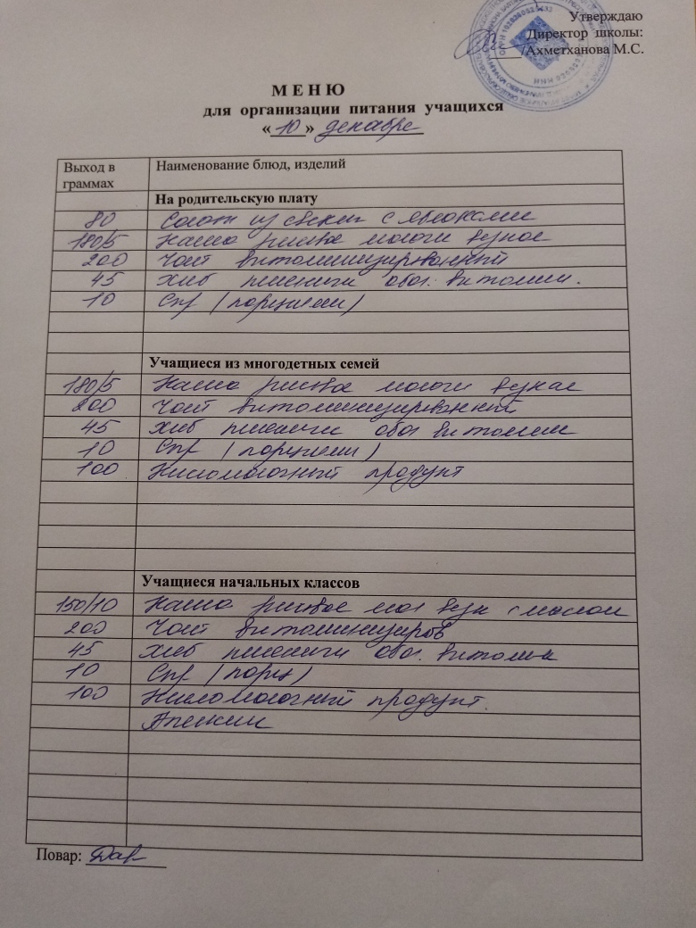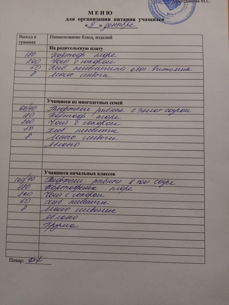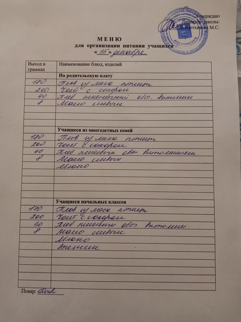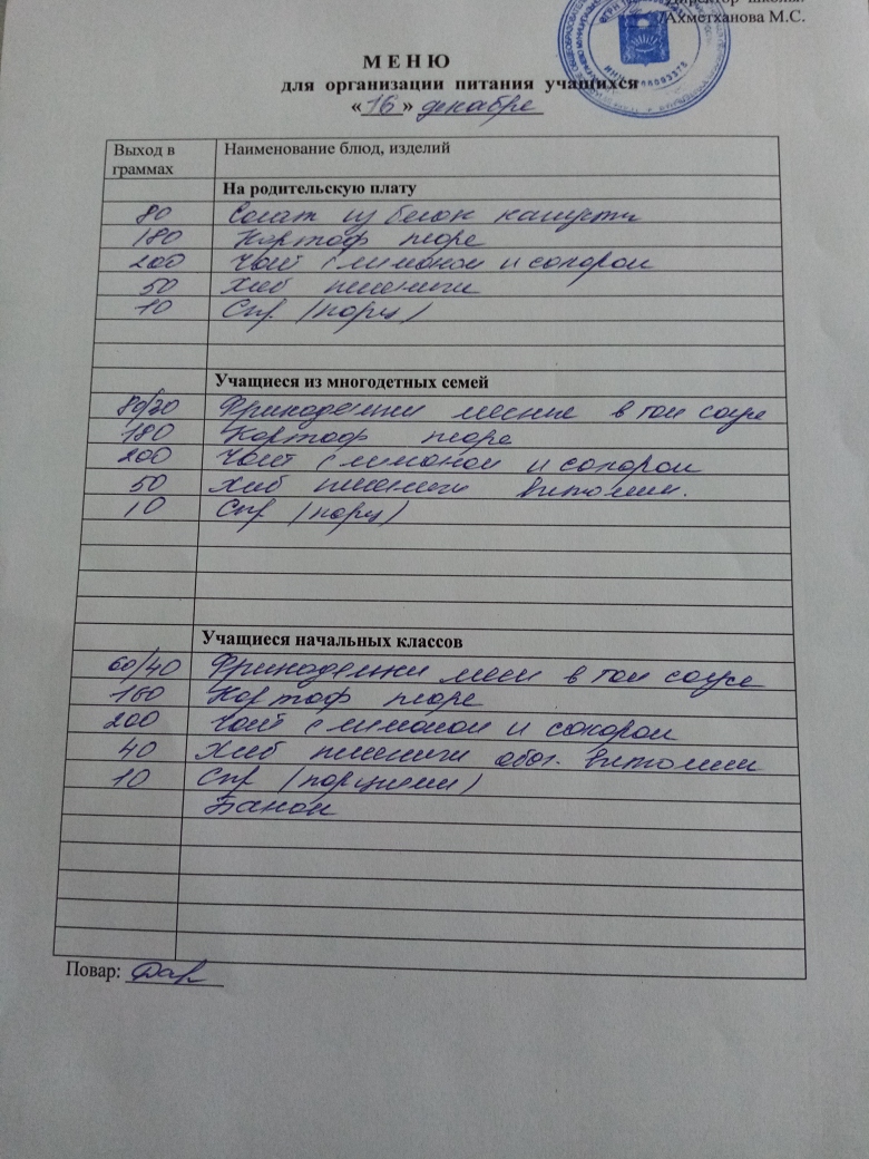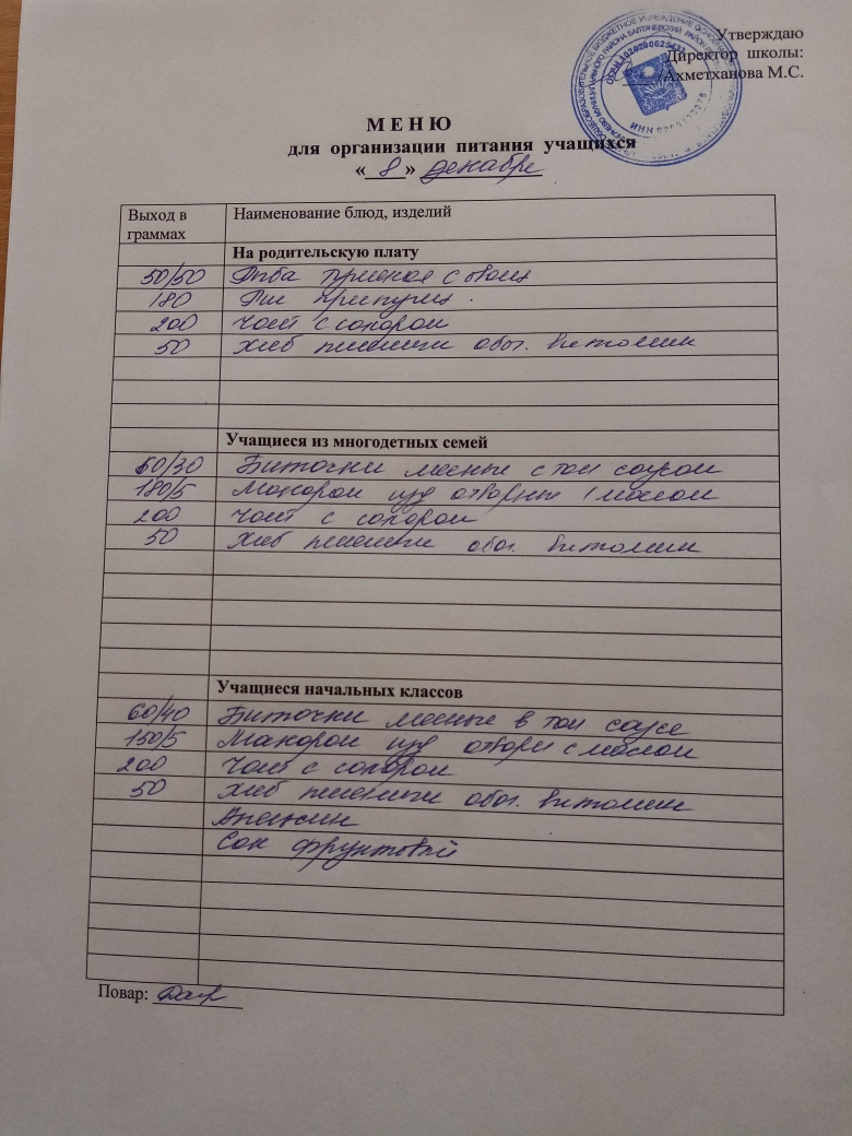 Стоимость школьного питания