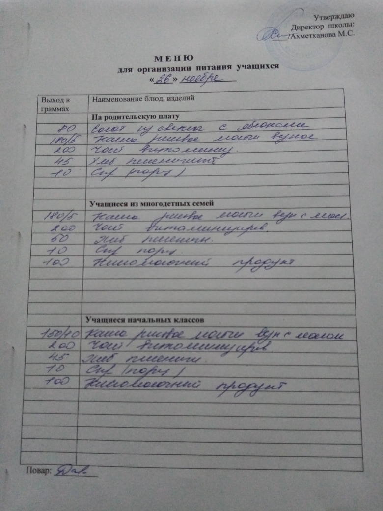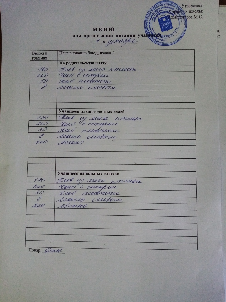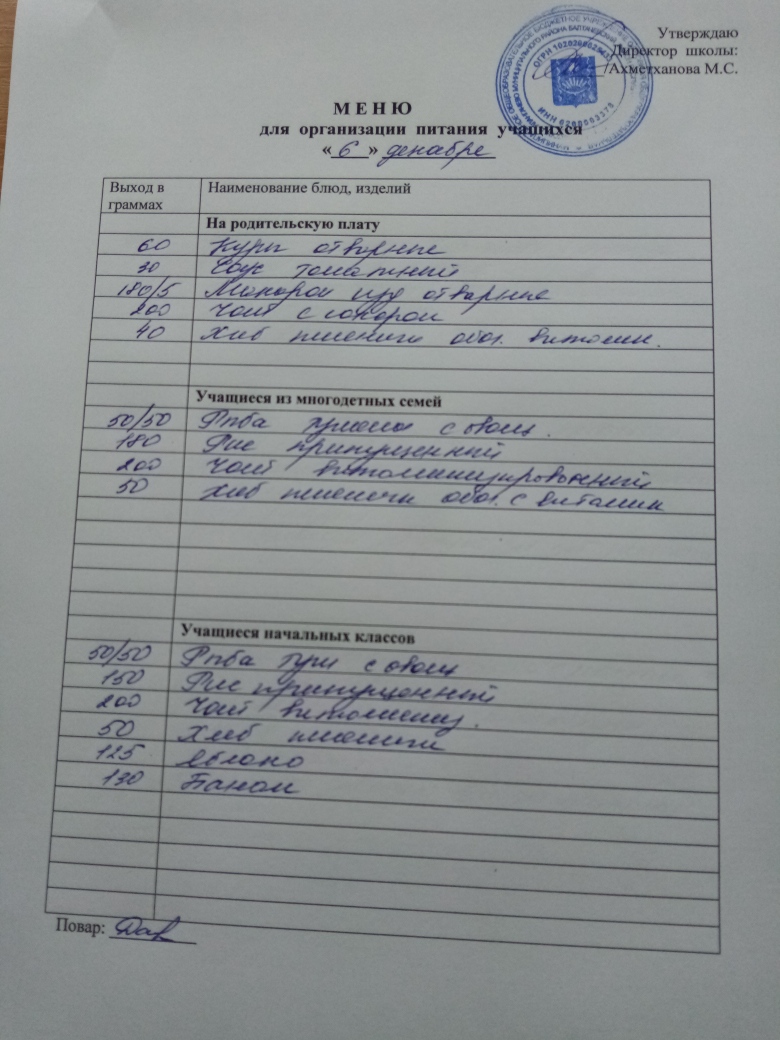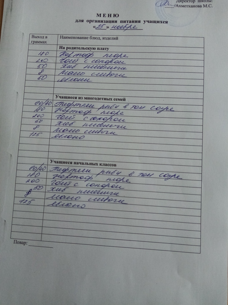 Стоимость школьного питания