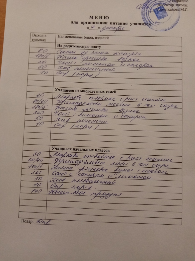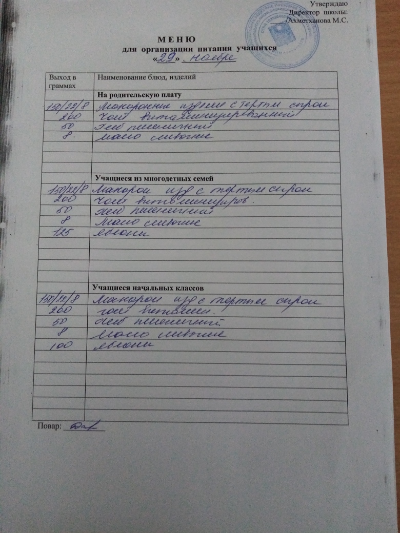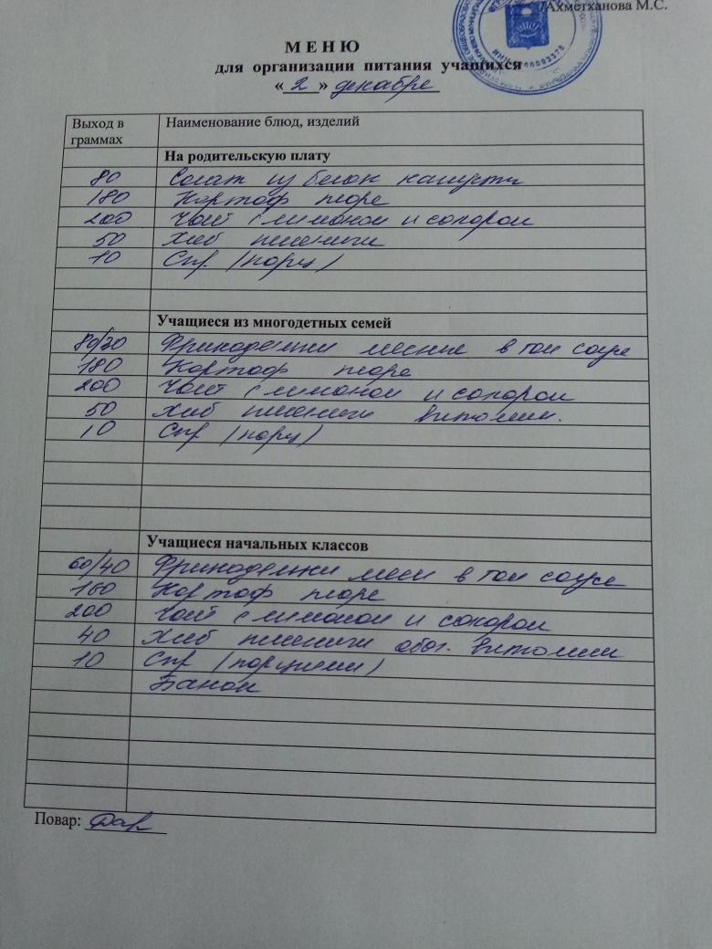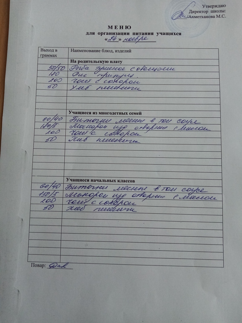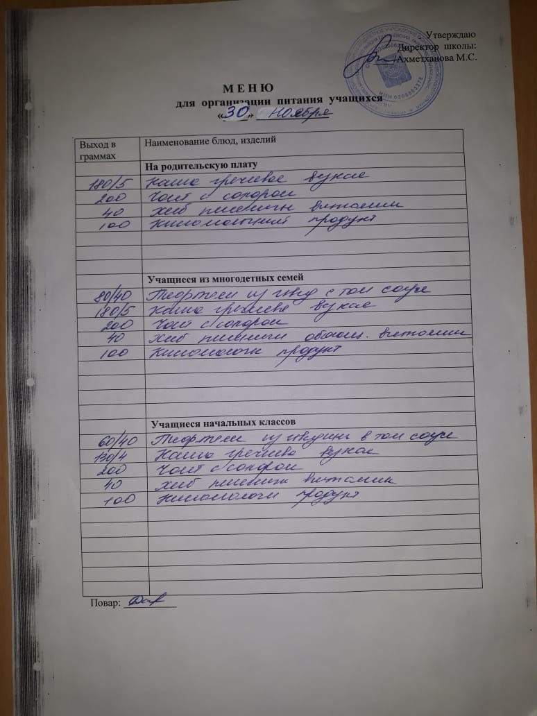 Стоимость школьного питания