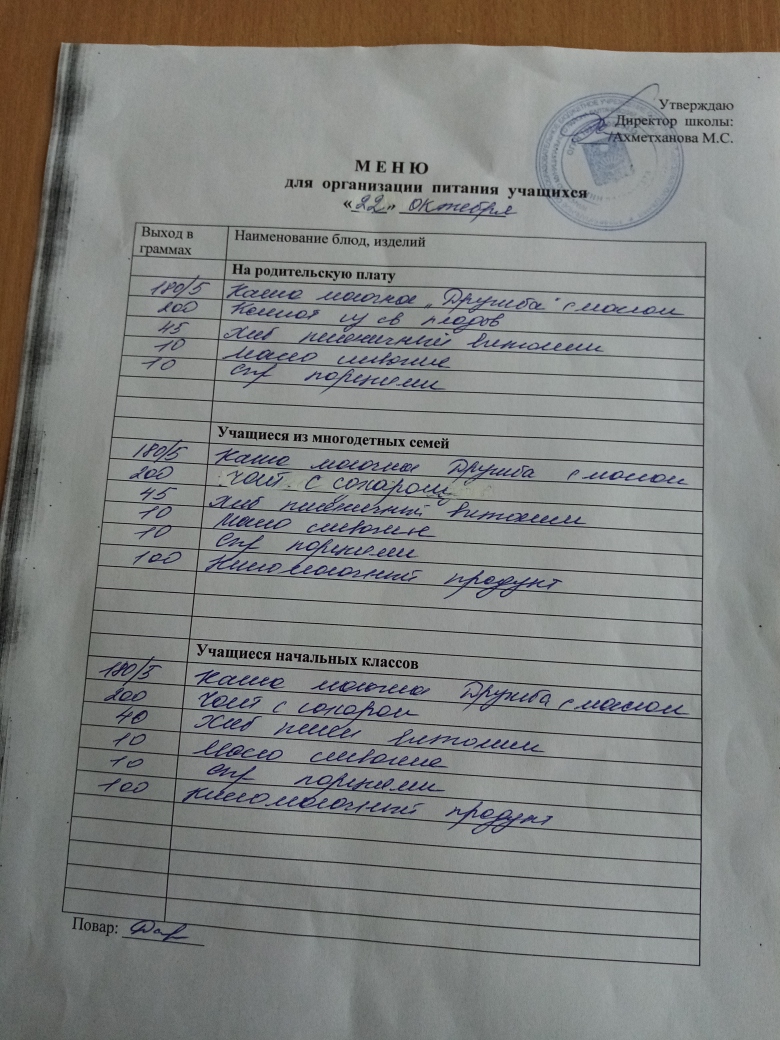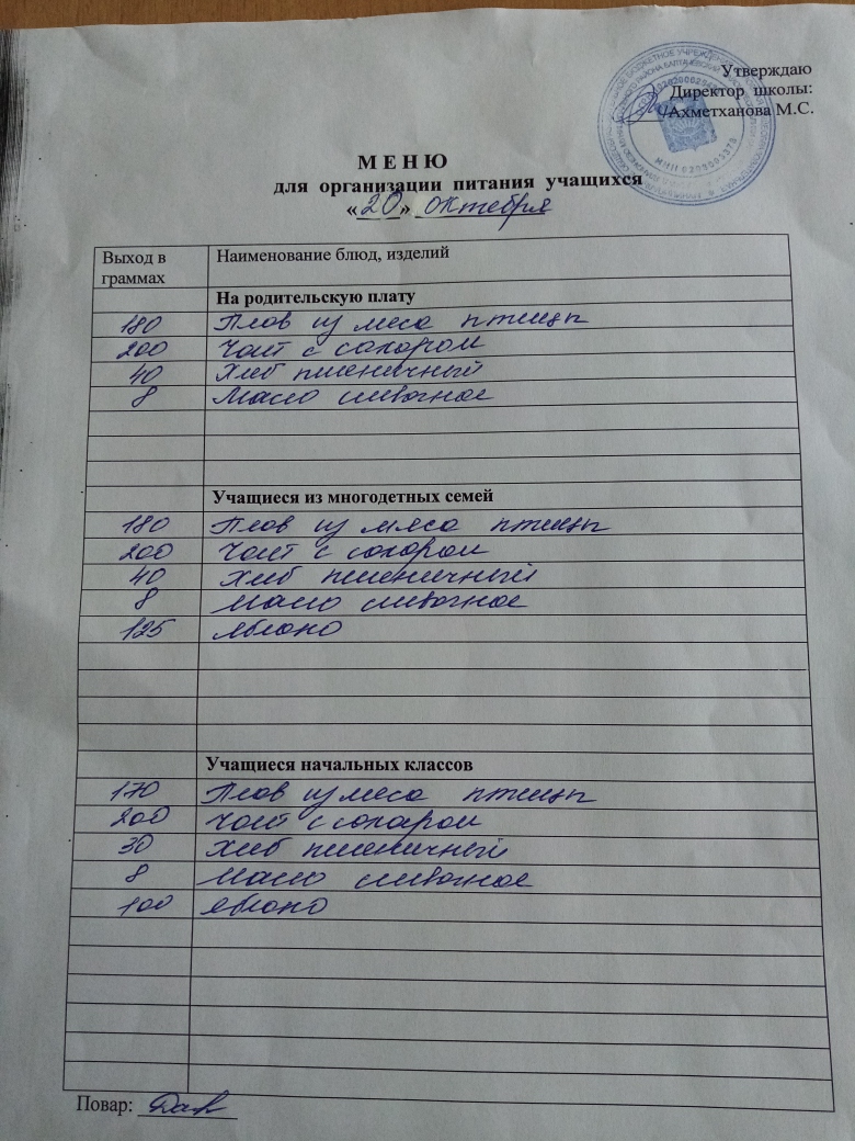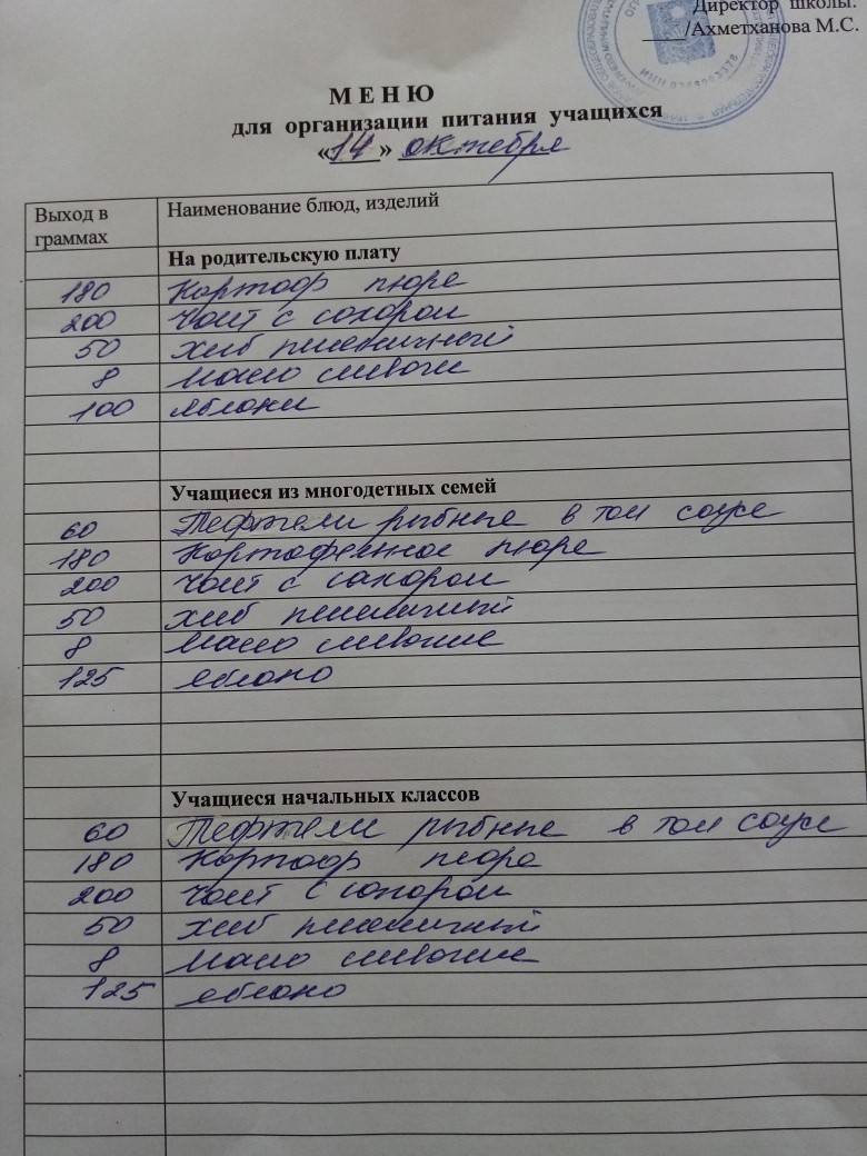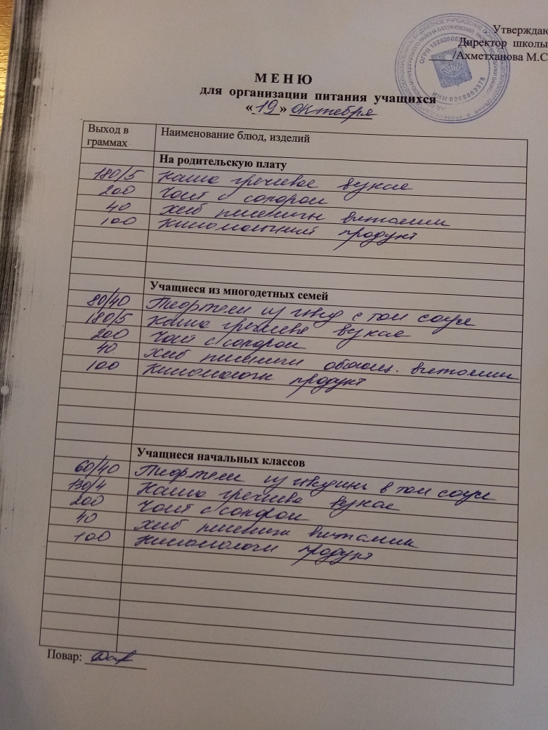 Стоимость школьного питания