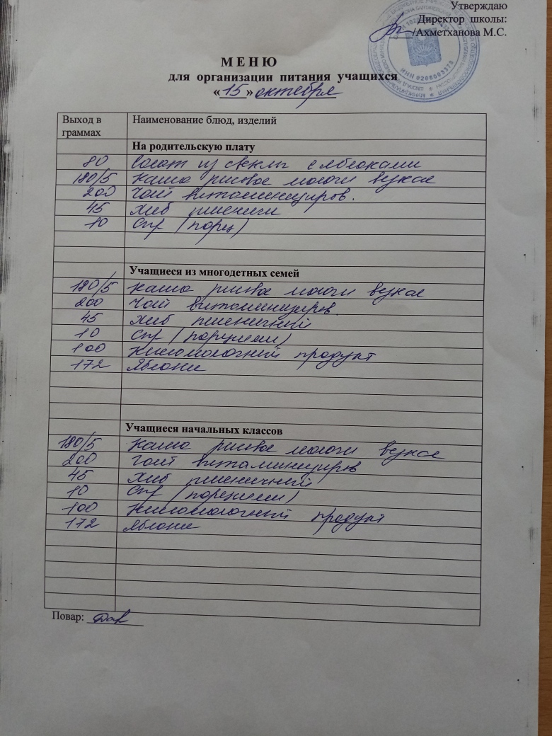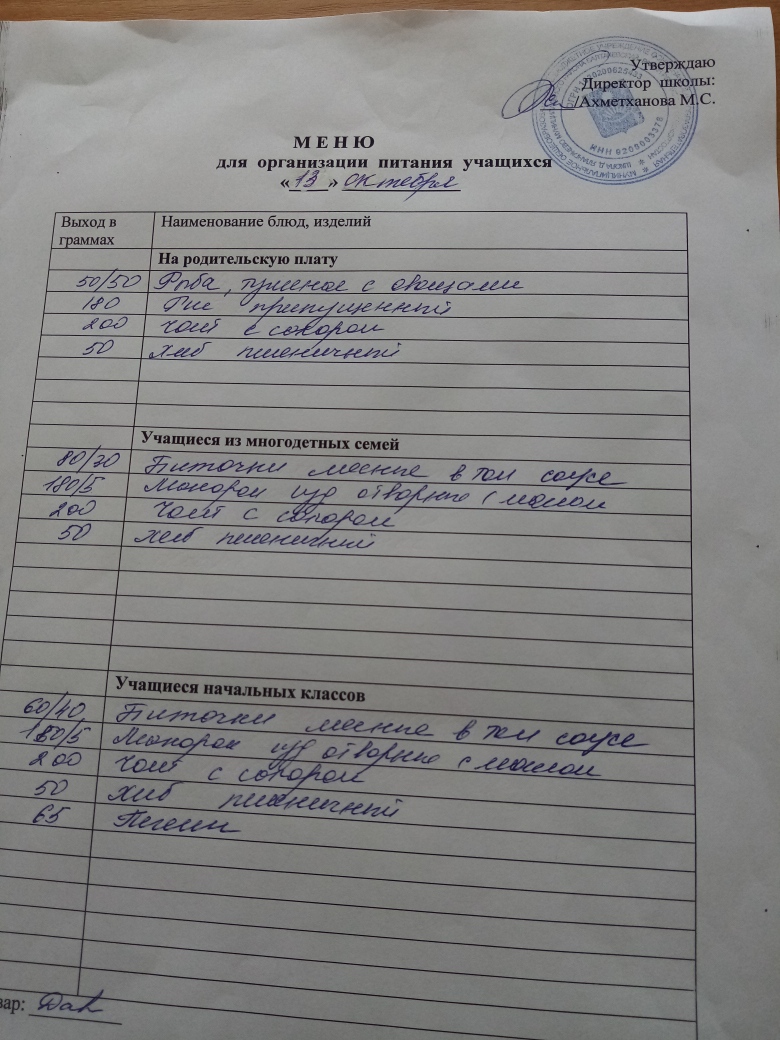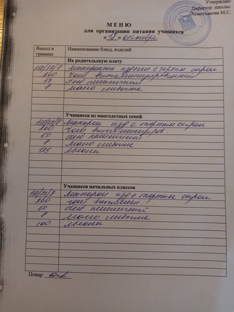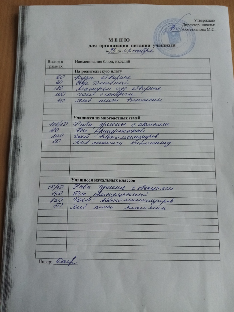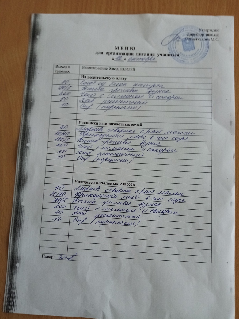 Стоимость школьного питания