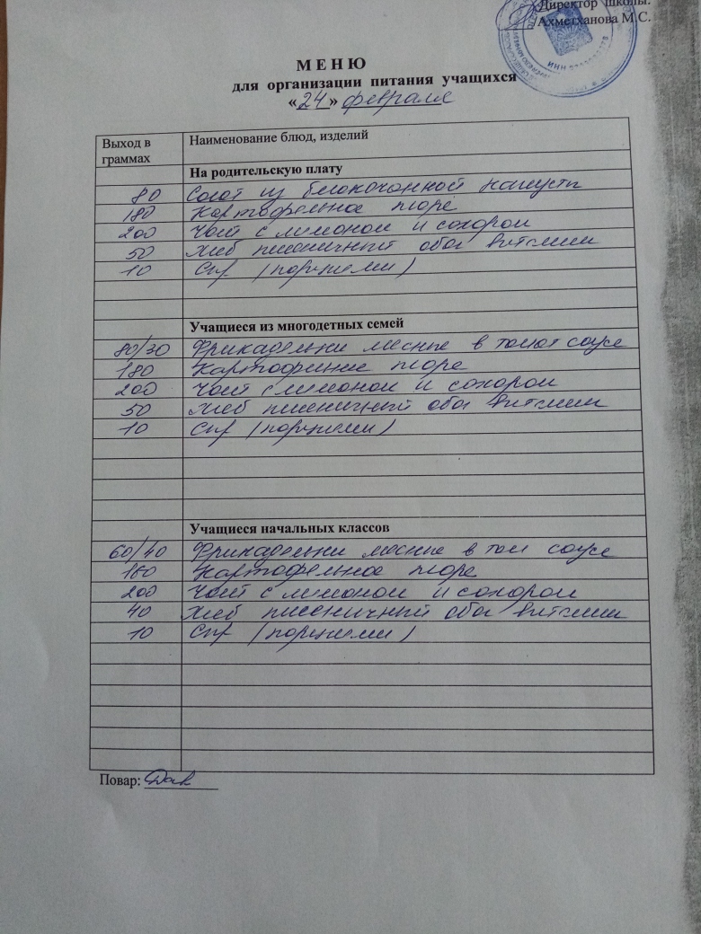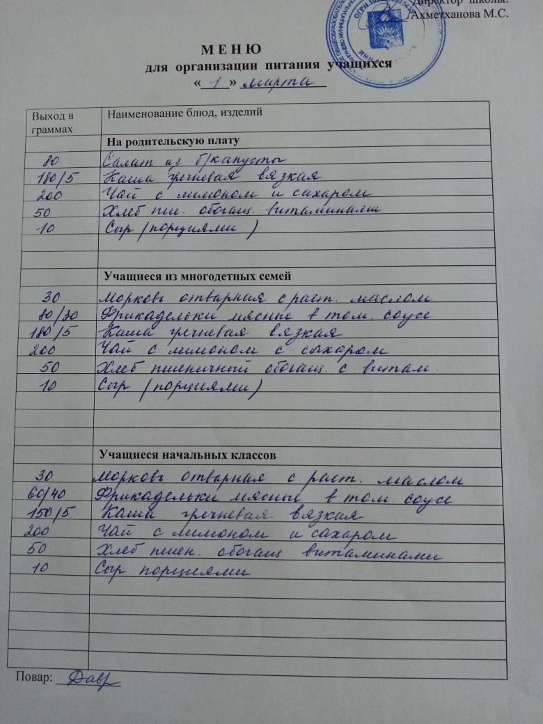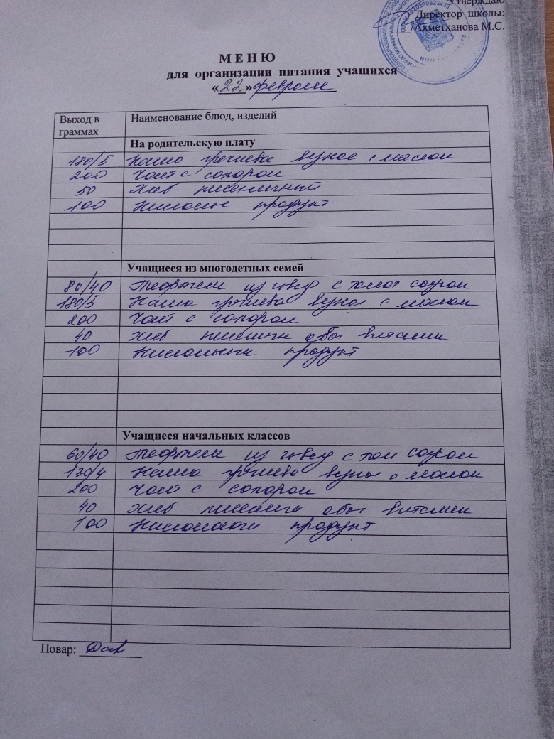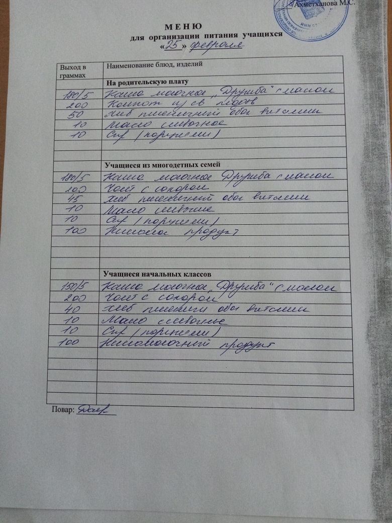 Стоимость школьного питания