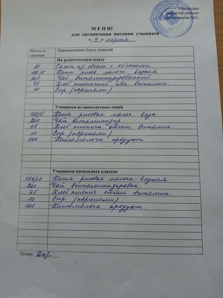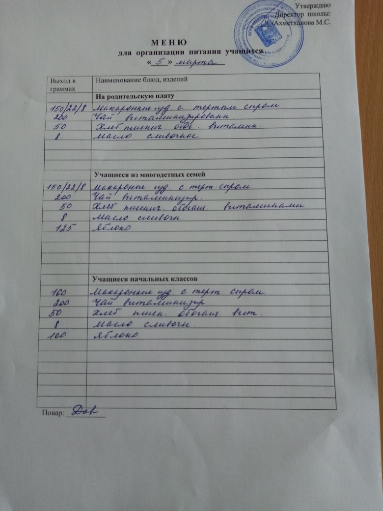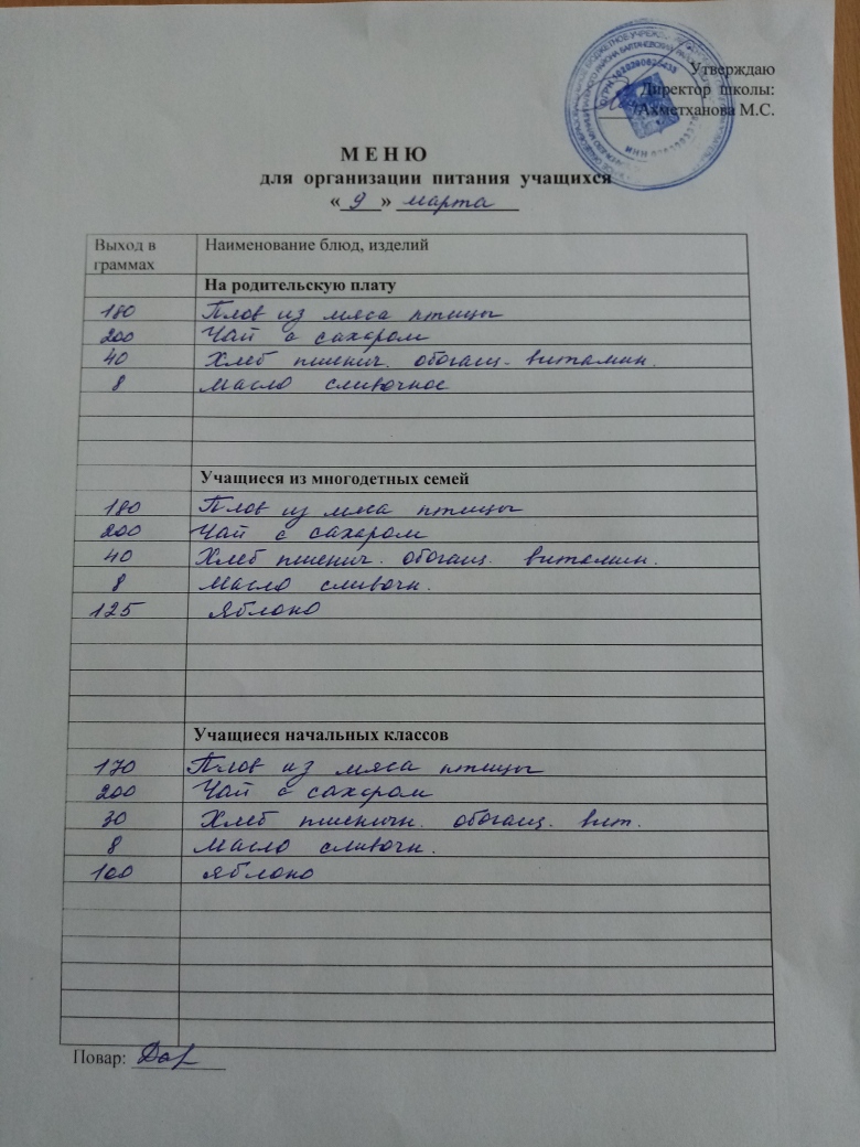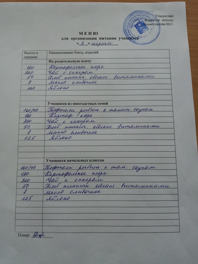 Стоимость школьного питания
